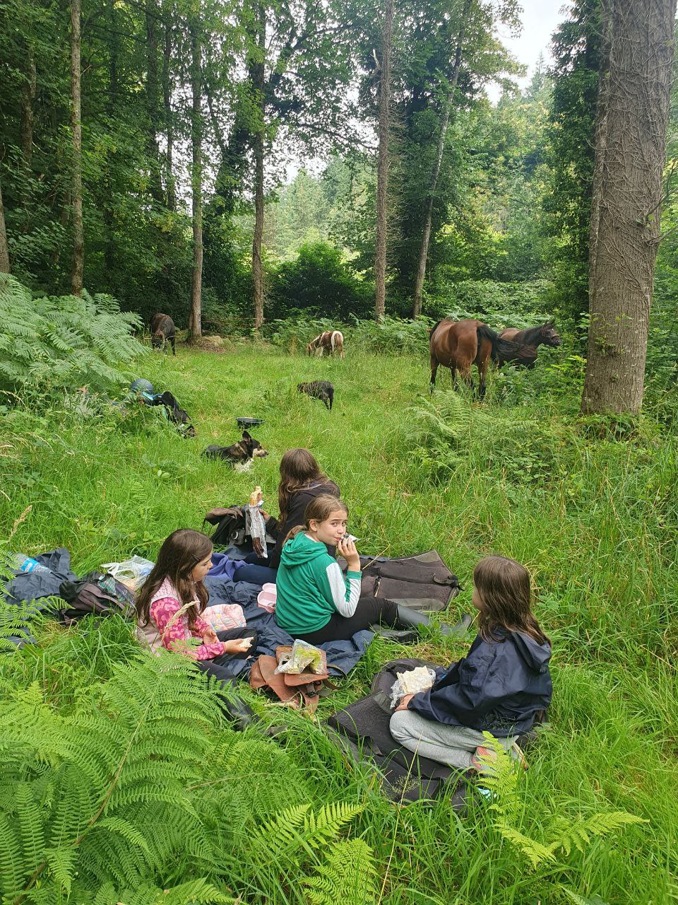 Le vendredi, dernier jour du stage, nous partirons en randonnée toute la journée à pied et à poney, les poneys porteront nos pique-niques et nous mettrons en application les apprentissages de la semaine.